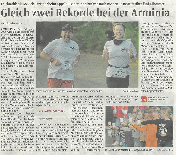 Zeitungsartikel zum 5. Appelhülsener Landlauf vom 27.09.2025