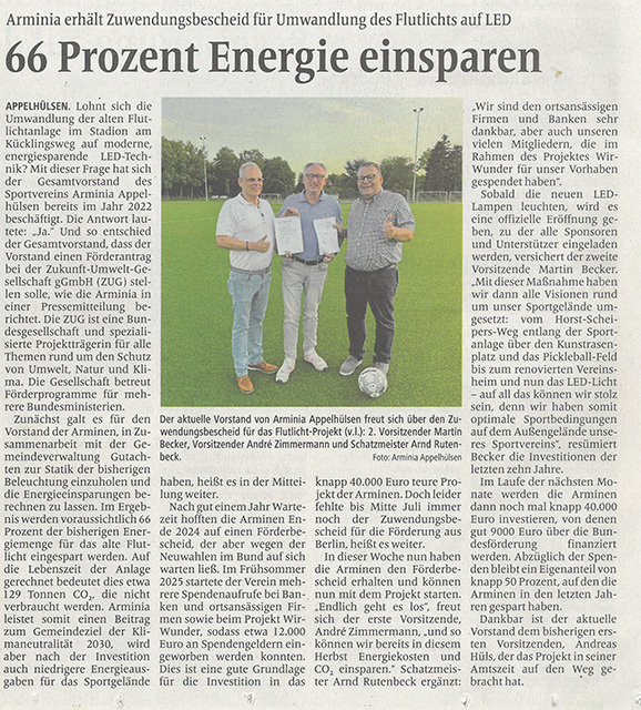 Zeitungsartikel zur Umwandlung des Flutlichts auf LED